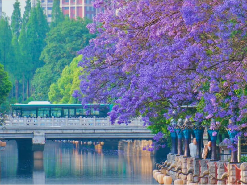 - Tháng 4 – 5 có thể đổi sang tham quan đường Thao Trường (Jiaochang Road) để ngắm hoa phượng tím, thời gian ngắm đẹp nhất là cuối tháng 4 đến cuối tháng 5.