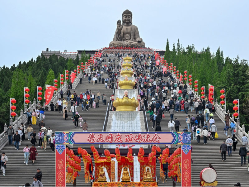 Sau khi ăn trưa, đoàn di chuyển tham quan Khu thắng cảnh Long Khẩu Nam Sơn là quần thể du lịch văn hóa – tâm linh nổi tiếng của tỉnh Sơn Đông, tọa lạc giữa không gian núi non hùng vĩ hướng ra biển. Nơi đây gây ấn tượng với Đại Tượng Phật bằng đồng cao lớn uy nghiêm, các công trình chùa chiền, điện thờ được xây dựng hài hòa theo kiến trúc Phật giáo truyền thống. Quý khách tham quan, chiêm bái, cầu bình an và tận hưởng bầu không khí thanh tịnh, trong lành giữa cảnh sắc sơn – hải giao hoà.