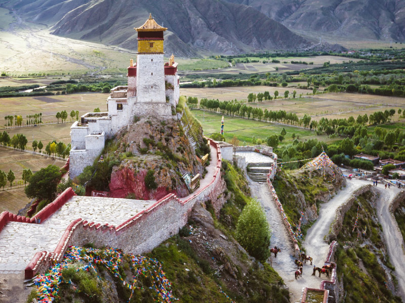 Sáng: Sau bữa sáng, đoàn khởi hành đi thành phố Zedang, tham quan cung điện Yumbulagang – cung điện đầu tiên trong lịch sử Tây Tạng, tên gọi theo tiếng Tây Tạng có nghĩa là “cung điện trên đùi sau của hươu cái”. Công trình được xây dựng trên đỉnh đồi cao, gắn liền với truyền thuyết về sự ra đời của nền văn minh Tây Tạng và các vị vua đầu tiên. Từ đây có thể phóng tầm mắt ngắm toàn cảnh thung lũng sông Yarlung, mang giá trị lịch sử, văn hóa và tâm linh đặc biệt.