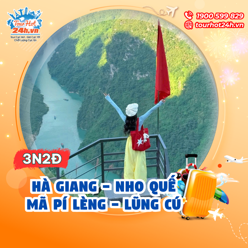 - Sông Nho Quế dài gần 200km bắt nguồn từ nước bạn Trung Quốc, dòng sông này từ phương Bắc chảy dữ dội tựa con ngựa bất kham không chịu thuần phục, ấy vậy mà khi dòng chảy xuôi về phương Nam, gửi gắm đến miền đất Hà Giang thì dòng sông ấy bỗng trở nên hiền hòa, dịu dàng tựa những lời mẹ ru nơi miền biên viễn yêu thương của tổ quốc. Xuôi theo những khúc uốn mình của đèo Mã Pì Lèng – một trong tứ đại đỉnh đèo của Việt Nam, ngắm nhìn dòng sông Nho Quế từ trên cao như một dải lụa ôm theo những triền núi sừng sững hùng vĩ nơi Hà Giang nắng hồng gọi mây. Đến đây, quý khách sẽ bắt đầu hành trình trên sông nước (được ngồi trên thuyền máy theo dòng nước xanh ngọc bích mát lành, dưới bầu trời xanh ngát tưởng dường như tâm hồn được lộng gió bốn phương trời, tiếng nước chảy róc rách tựa thanh âm của thiên nhiên nổi lên thành bản nhạc hùng ca của núi rừng).Cũng theo dòng Nho Quế, quý khách còn đi qua con hẻm Tu Sản với hai vực đá cao tới 800m, đây là hẻm núi hùng vĩ và lớn nhất tại Việt Nam cũng như tại khu vực Đông Nam Á. Ngang qua hẻm Tu Sản, ta cảm tưởng như thật nhỏ bé trước người mẹ thiên nhiên vĩ đại, nhịp đập con tim như bồi hồi trước khung cảnh đẹp mà tráng lệ từ non nước vùng biên viễn (Chi phí tự túc).